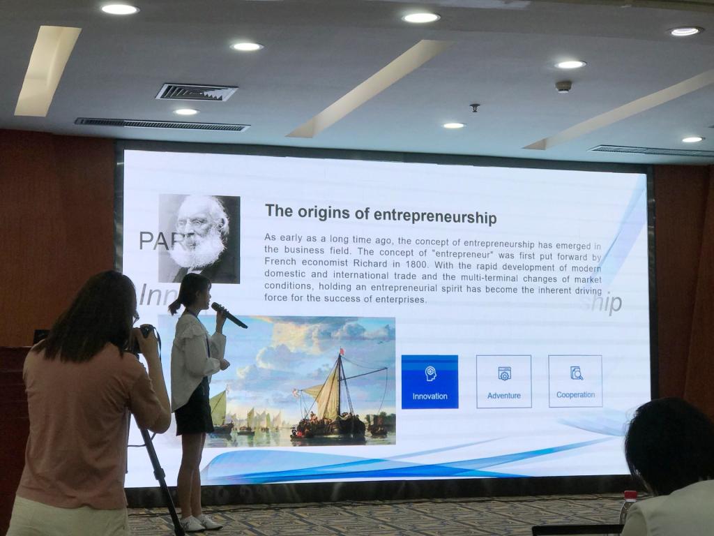 首届“学研汇智杯”全国高校商务英语综合能力大赛以“‘一带一路’连接世界、商务英语筑梦中国”为主题,在全国分设多个赛区。大赛采用了校级初赛、省级复赛、全国总决赛三级赛制。此次山东赛区(复赛)共有来自全省十余所高校的多个队伍参赛,现场由微视频作品评比模块(40%)、线上知识竞赛模块(20%)、现场说作品模块(30%)及问题回答模块(10%)四个部分组成。其中,线上知识竞赛全程通过“51Learning商务英语综合技能视听说实训系统”举行。