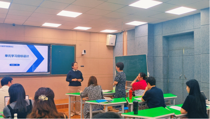 活动过程中,文化路小学教育集团英语教研团队七位骨干教师从大单元教学的整体设计、主题意义、目标叙写等方面进行了课件展示和认真讲解。每位老师讲解完毕后,其他参与研讨的人员都进行了热烈的讨论,使教研氛围达到了高潮。