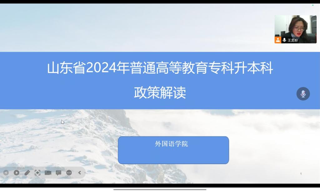 为帮助专升本学子充分掌握考试政策信息,明确学习方向、增强学习动力,12月21日晚,永利集团248cc登录通过“腾讯会议”网络平台召开山东省2024年普通高等教育专科升本科政策解读主题班会。本次班会由专职辅导员王龙粉主持,永利集团248cc登录2021级全体专科班学生参加了此次班会。