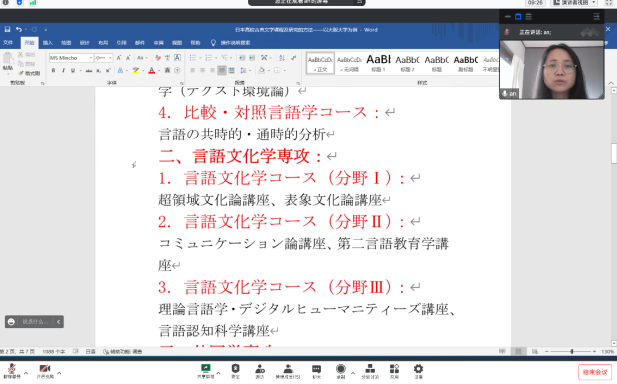 9月28日下午,永利集团248cc登录举办了“青年学者学术论坛”。此次论坛采取线上的形式进行。永利官网青年教师、目前在日本大阪大学攻读博士学位的安佰洁作了题为“日本高校古典文学课程及研究方法——以大阪大学为例”的学术报告。永利集团248cc登录全体专任教师和部分学生参加本次学术论坛。
