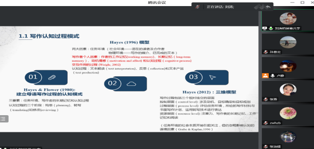 报告中,刘涛结合自己在枣庄市教育科学研究院挂职期间的研究,以时间为轴,介绍了高中读后续写的起源发展和互动协同理论,解释了互动协同和外语教学的关系以及语言理解和语言输出紧密结合的重要性。最后,刘涛就高校教师如何与教科院、中学开展协同育人、合作研究提出了自己的见解与看法。