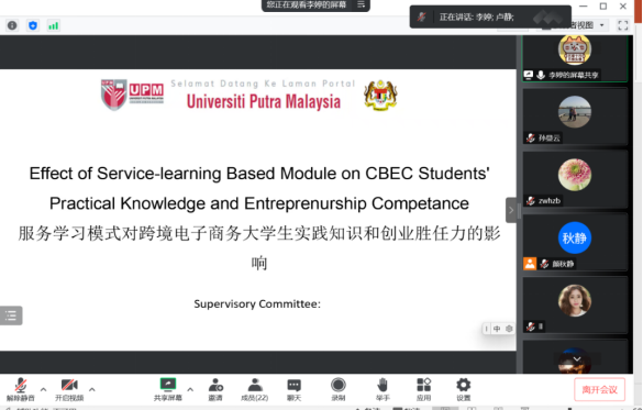11月9日下午,永利集团248cc登录举办第五期“青年学者学术论坛”。此次论坛采取线上方式进行。青年教师、马来西亚理工大学在读博士李婷作了题为“服务学习模式对跨境电子商务大学生实践知识和创业胜任力的影响”的学术报告,全体专任教师和部分学生参加了本次学术论坛。