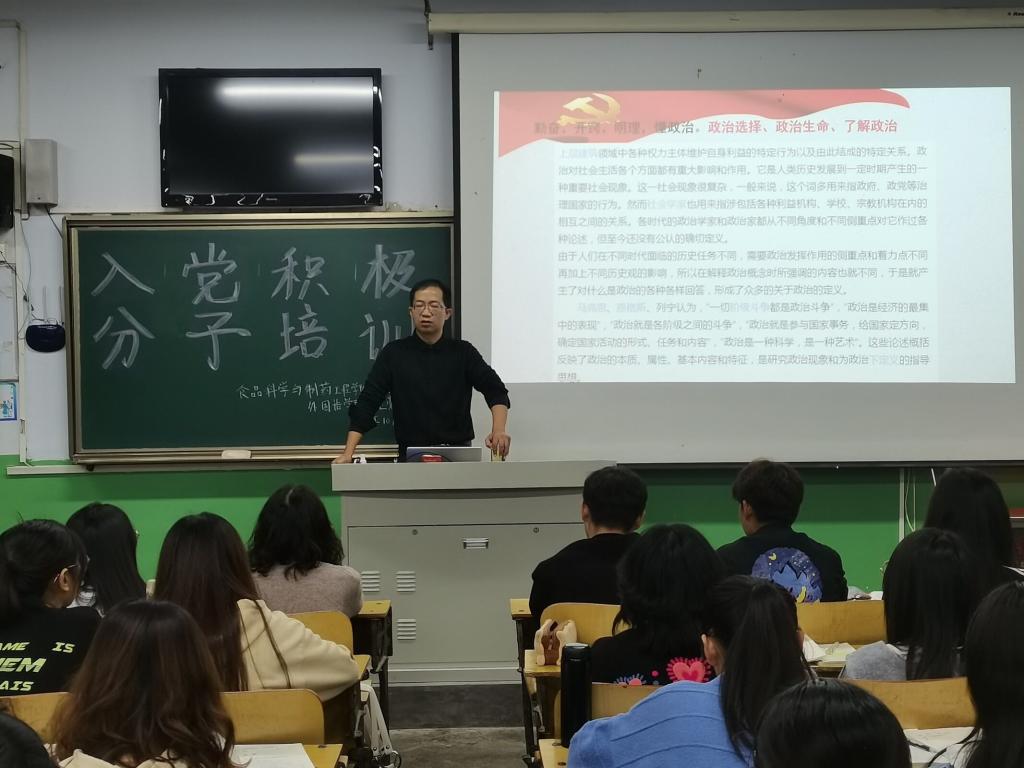 10月26日晚,永利集团248cc登录与食品科学与制药工程学院在文科楼201教室共同组织开展了入党积极分子培训党课-《学思践悟谋发展、砥砺前行新时代》,此次党课由永利集团248cc登录党总支副书记黄成亮主讲,本期入党积极分子参加了培训。