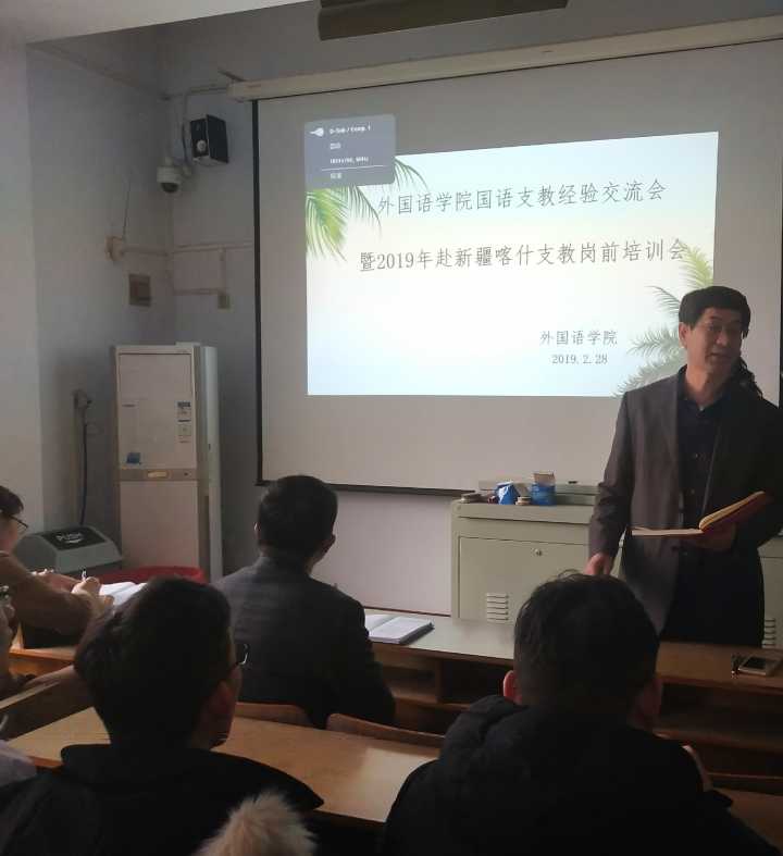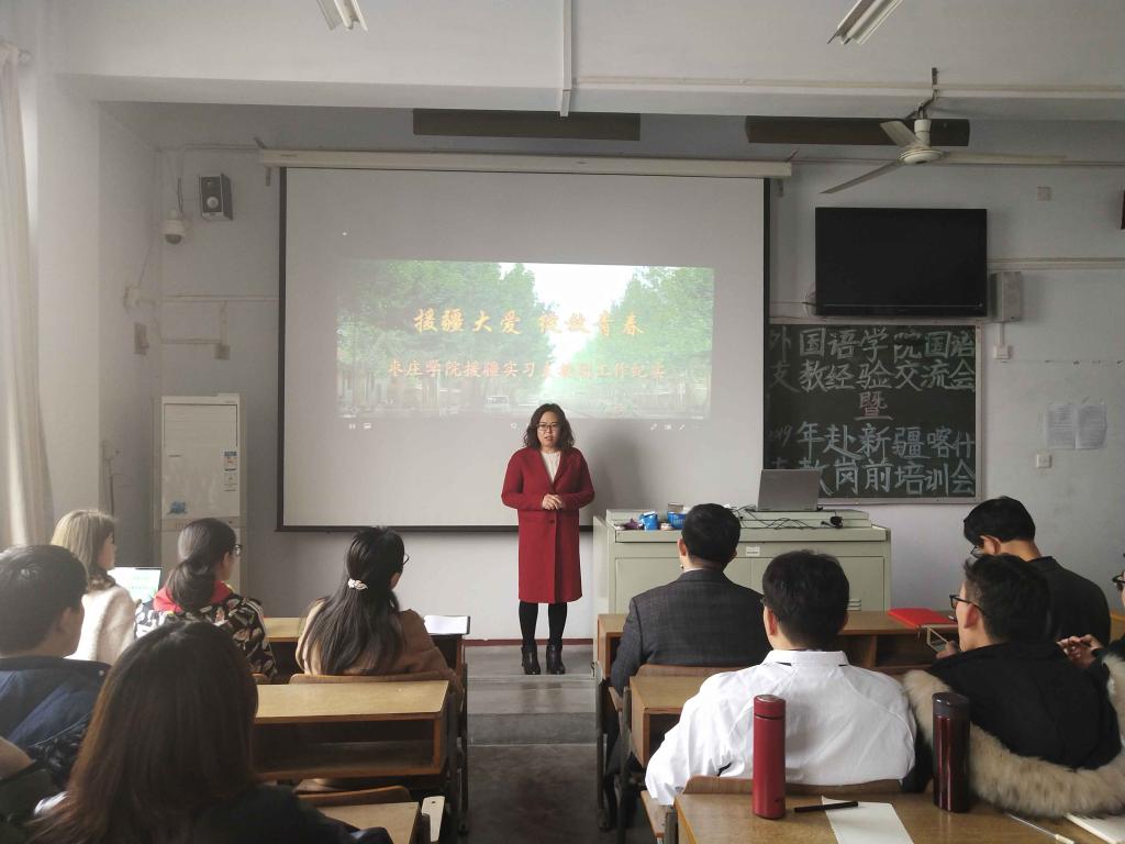 首先,褚院长表示,实习支教,不仅是师范专业实践教学的一个重要环节,也是教育部、山东省教育厅为促进基础教育尤其是边疆基层基础教育发展做出的一项政治政策决定,鼓励同学们珍惜喀什支教实践机会,注重为人师表,担负起教书育人的重任,争做一名优秀教师。接着,18年参与新疆喀什国语支教的刘玲老师分享了自己的支教经历和感受体会,通过纪录视频展示了服务地的教学工作、生活住宿环境等,同时针对同学们关心的工作、生活、个人安全等方面的问题答疑解惑。随后,教师代表王晓倩从如何备课和提升教学技巧方面对同学们进行了岗前培训,要求他们根据支教当地学生的性格特点、知识水平等设定教学目标,做到真正地备学生、备教材、备教学流程。