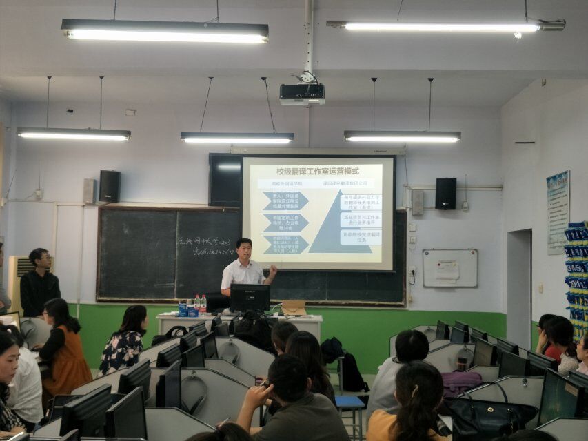 为了提高教师的开展翻译工作理论水平和业务能力,永利集团248cc登录于5月9日下午在文科楼203多功能教室举办了“TMXmall高校行——2018全国翻译技术巡回科普讲座”活动。出席此次讲座的有译国译民翻译集团山东分公司总经理孟现朋、市场经理巩培林、产品经理刘宁赫以及永利集团248cc登录全体教师。