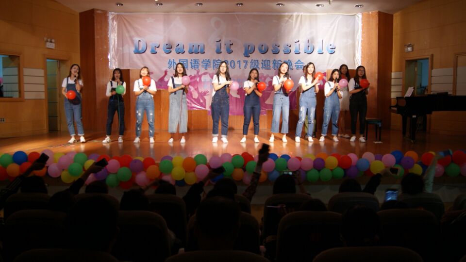 10月9日晚,永利集团248cc登录在音乐厅举办了以“Dream It Possible”为主题的2017级迎新晚会。学院领导、外教、辅导员以及2017级全体新生欢聚一堂,共同观看了演出。