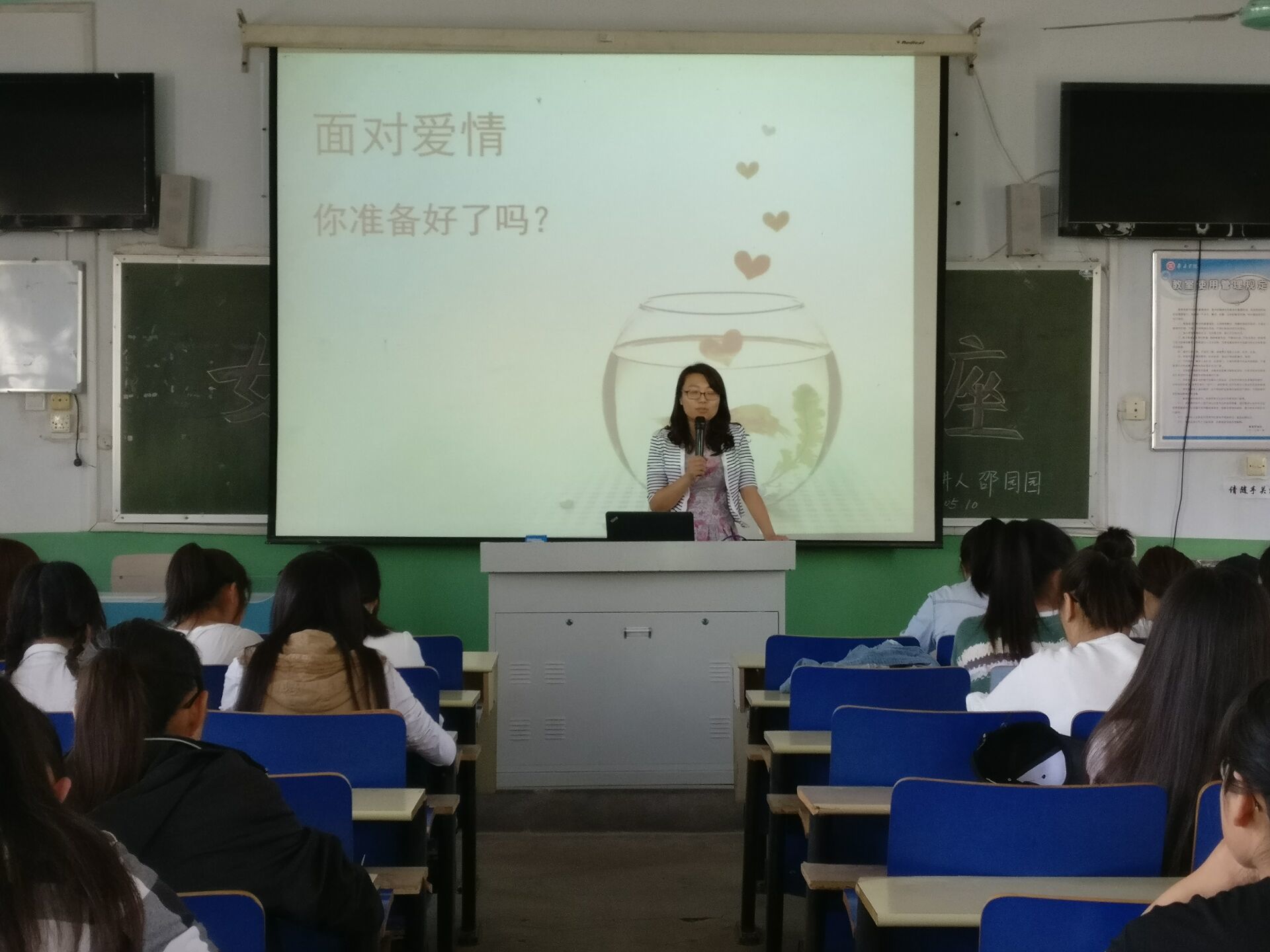 本次讲座以“面对爱情,你准备好了吗”为主题,邵老师围绕 “什么是爱情”、“失恋”、“爱情的正确的打开方式”三个方面作了详细讲解。讲座以一则“什么是爱情”的漫画引入,让同学们体会到爱情的美好。然后邵老师通过真实、鲜活的事例对大学生恋爱的原因及容易出现的失恋问题进行了讲解,告知同学们正确面对和理性处理失恋问题。最后,通过相关视频,邵老师向同学们展示了打开爱情的正确方式,教育女生们要自尊自爱,树立正确的恋爱观。