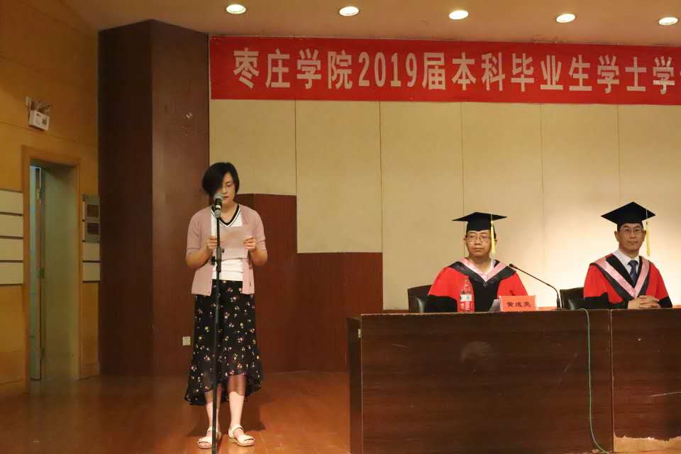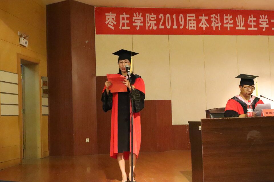仪式在庄严的国歌声中拉开序幕。首先,副院长褚夫敏宣读了学士学位授予名单,决定授予陈立等186名2019届毕业生文学学士学位。接着,在欢快喜庆的音乐声中,曾宪明教授为每位毕业生正冠拨苏、颁发证书、逐一握手并合影留念。随后,教师代表张春莉发言,用真挚的语言表达了对毕业生们的美好祝福和期望。毕业生代表王梦珊在发言中表达了对母校的培育之情以及对老师和同学们的依依不舍。最后,院党总支书记刘玉宝致辞,为圆满完成学业即将踏上新的人生征程的毕业生送上祝福,并希望同学们胸怀远大抱负,早日成为国家和社会的栋梁,为母校争光。