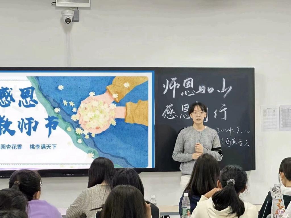 一声问候,传情达意。9月10日,永利集团248cc登录学生通过“课前一分钟的问候”,用最朴素的方式,向任课老师送上祝福、表达谢意。鲜花赠恩师,话语寄祝福,让课堂充满了别样的温馨。课堂上,学生们用质朴的言语,向全体教师传递了真挚的感恩之情,表达了深切的关怀与敬意,激励着教师们以高尚的师德和深厚的教育情怀继续开展教育工作。