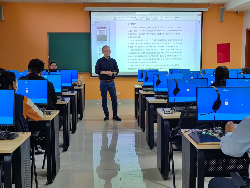张贵华生动讲述了自己的学习、工作、创业和发展的经历,介绍了TKSK株式会社的研发创新、客户服务、安全验证等方面的综合实力。在交流环节,张贵华详细解答了学生们有关日语学习规划、人生职业生涯规划以及就业、创业相关的问题,同时也简单介绍了TKSK公司招聘流程、实习时间等方面的提问,并强调相比于工作能力,员工人品是企业招聘更加注重的因素。