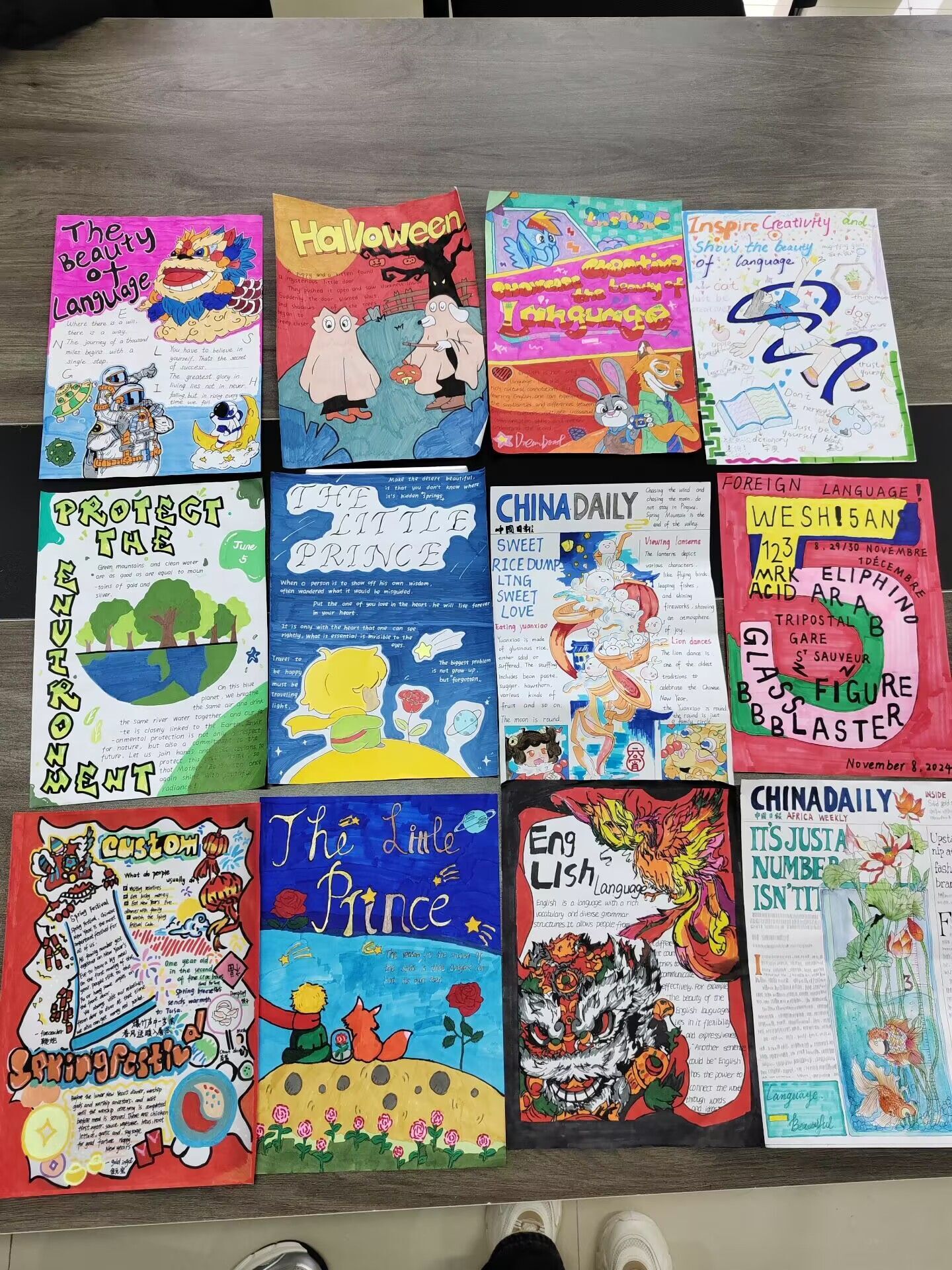本次大赛收到作品24份。选手们充分发挥了想象力和创造力,创作出了富有创意和个性的外文海报,在设计中巧妙地将外语文化与中华文化相结合,展现了独特的魅力。大赛邀请了具有丰富经验的教师担任评委,他们从专业的角度对作品进行了点评和指导,为选手们提供了宝贵的意见和建议。