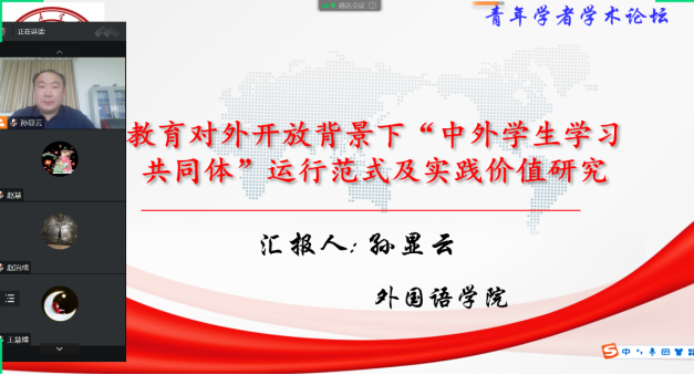 近日,永利集团248cc登录继续举办“青年学者学术论坛”。此次论坛采取线上线下相结合的方式进行。永利官网青年博士、教授孙显云作了题为“教育对外开放背景下‘中外学生学习共同体’运行范式及实践价值研究”的学术报告,全体专任教师参加了本次学术论坛。