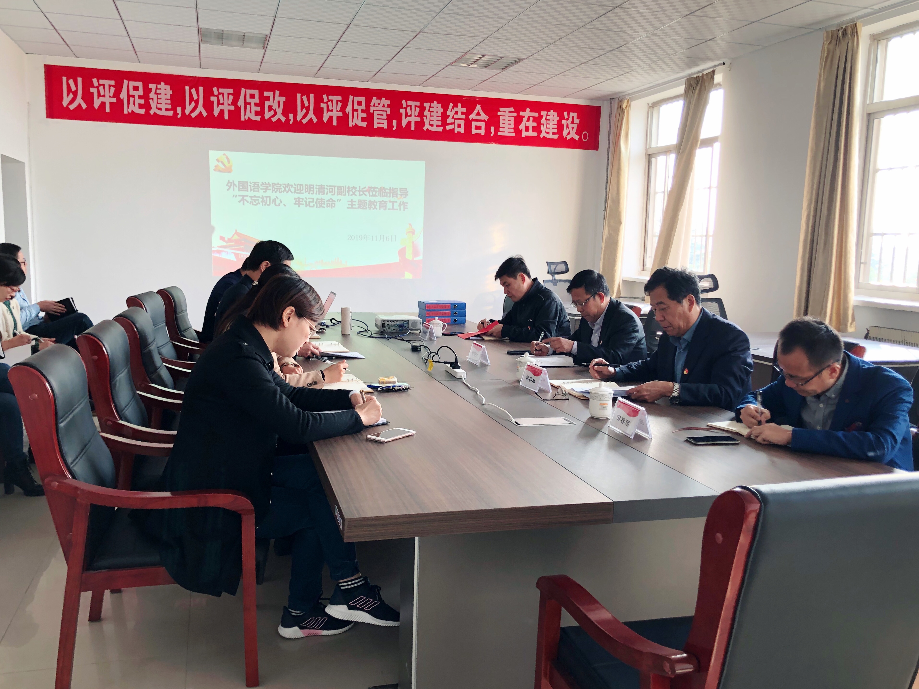 为全面落实山东省委教育工委《关于推进高校“不忘初心、牢记使命”主题教育的重点任务》的通知精神,按照《永利集团248cc登录“不忘初心、牢记使命”主题教育抓基层党建“双包双联”工作方案》的相关要求, 11月6日上午,学校党委委员、副校长明清河同志赴永利集团248cc登录指导主题教育工作,学校党委主题教育第四巡回指导组组长侯宗华、成员徐海波、田春雨陪同参加。永利集团248cc登录党政负责人、党总支委员、党支部书记等参加了工作汇报会。