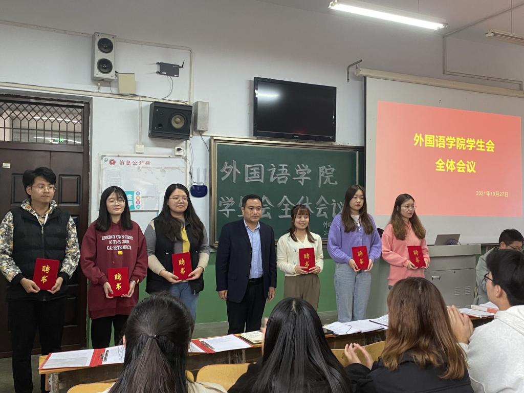 会上,张婷宣读了永利集团248cc登录2021届学生会、自律会干部名单。学院领导依次为新一届学生会干部颁发聘书并合影留念。随后,永利集团248cc登录2020届自律会主席石旭发言,对过去一年的学生会和自律会工作进行了总结,同时希望新一届学生会成员继续发扬优良传统,充分发挥学生会的桥梁与纽带作用,做好本职工作。2021届学生会主席董辰雨、自律会主席孙君奇依次发言,对上一届学生会做出的贡献表示感谢,并承诺将不辜负老师和同学们的信任,带领新一届学生骨干充分发挥学生组织的作用,开拓创新,再创辉煌。