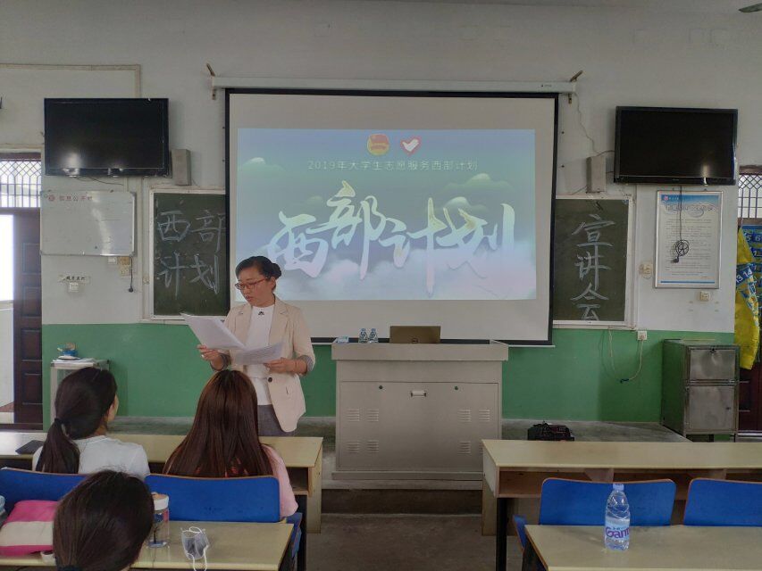 张婷传达了我校2019年大学生志愿服务西部计划的实施方案,介绍了西部计划的服务内容、报名流程、志愿者的招聘条件和服务期满后享受的优惠政策,并针对学生关心的问题进行了详细解答。张婷鼓励同学们积极响应团中央“到西部去,到基层去,到祖国最需要的地方去”的伟大号召,以优秀志愿者为榜样,积极参与西部计划,为西部地区建设贡献力量。