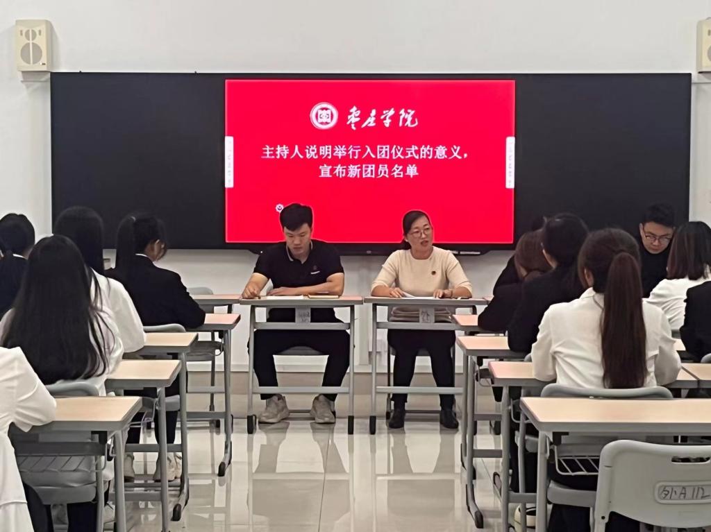 新入团仪式在庄严的国歌声中拉开序幕。会议宣读了新团员名单。入团介绍人代表宣读了《团章》中团员的义务和权力。随后,新老团员代表依次发言。