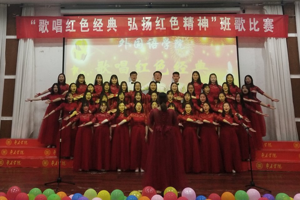 在18级英语教育一班嘹亮的合唱《我们都是追梦人》中,比赛拉开帷幕。同学们以整齐统一的服装、高亢嘹亮的歌声和蓬勃向上的朝气亮相比赛现场,展示了他们精心编排的合唱曲目。合唱《我的中国心》体现了海外赤子眷恋祖国的深情,也唤起了在场师生深深的民族自豪感。《明天会更好》唱出了同学们对新时代美好生活的向往和阔步向前的豪迈气概。《我爱你中国》在同学们满怀深情的演绎下,唱出了新时代对党和对祖国的浓厚深情,并将比赛推向高潮。各参赛班级独具匠心的编排和嘹亮的歌声,使得整个比赛现场精彩纷呈、气氛热烈。经过激烈角逐,2018级日语班摘得本次比赛的桂冠。