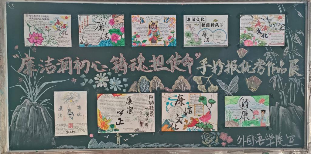 文化周期间,学院组织学生参加了“笔墨话清风”廉政书法比赛,参演了“润心话语”情景剧视频制作,积极组织开展“廉心文语”校园征文比赛、廉政警句外文翻译、“清心妙语”创意手抄报征集活动。通过网络活动、作品征集、廉洁故事,提炼廉洁文化的思想内涵,弘扬廉洁学风,引导师生廉以律己。